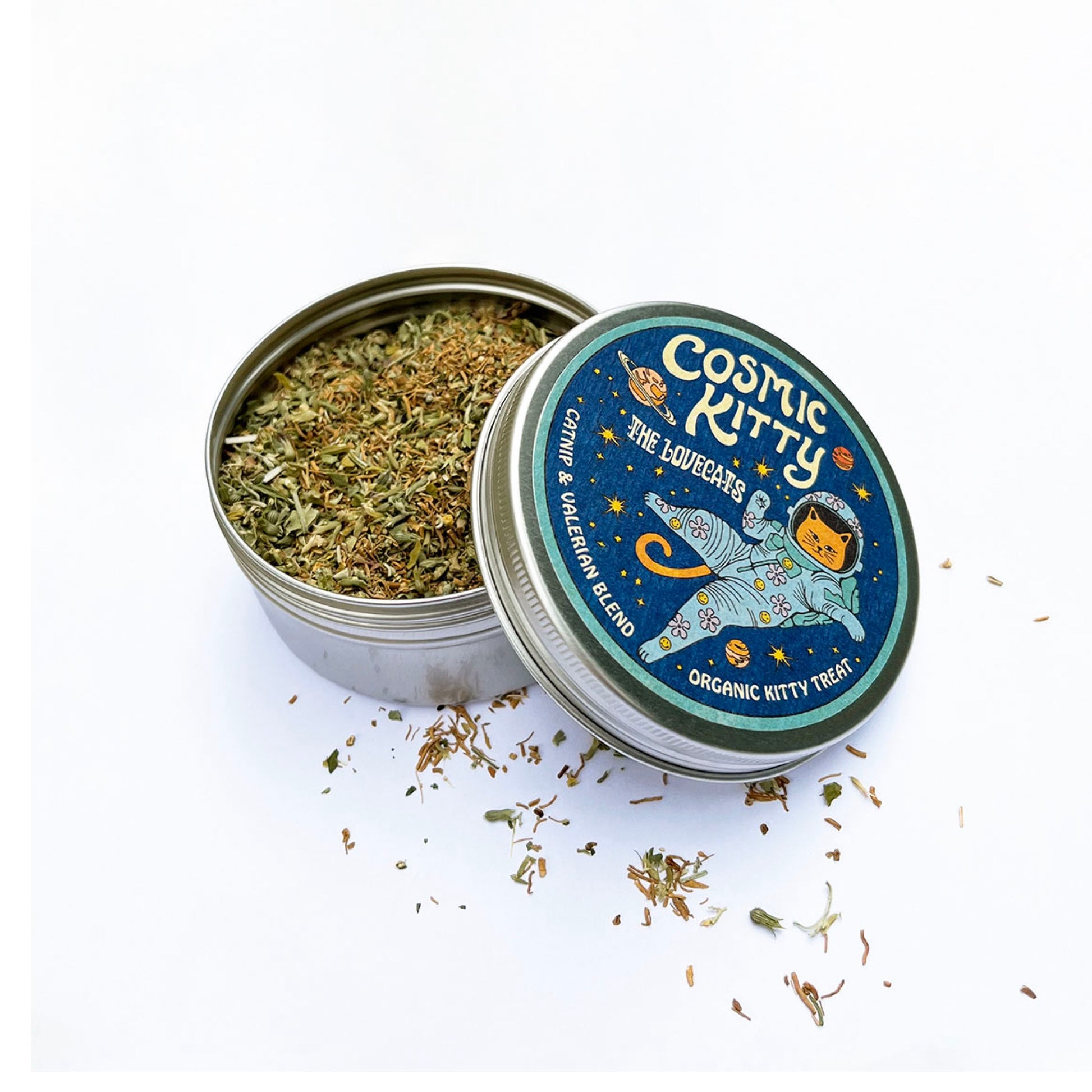 Fleaturing the finest, most potent organic catnip and valerian in a cute silver tin - complete with original psychedelic artwork to set the mood!